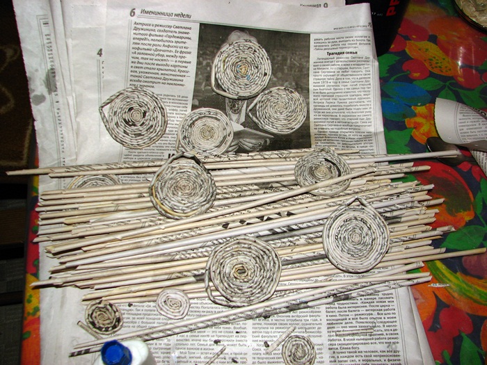 Для начала, как Вы понимаете, необходимо научиться делать трубочки из газет.