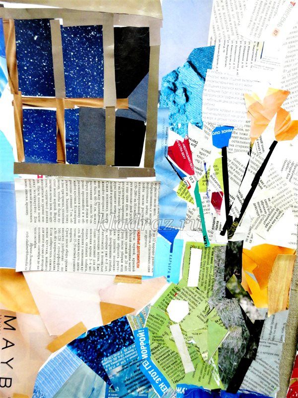 Для того, чтобы ваш малыш обнаружил материалы разные по фактуре, на следующих семейных занятиях аппликацией можно использовать кусочки разной бумаги, имеющейся в вашем доме. Вам пригодится все, что есть под рукой: салфетки, фантики, конверты, страницы из журналов, фольга, а так же блестки и тп…