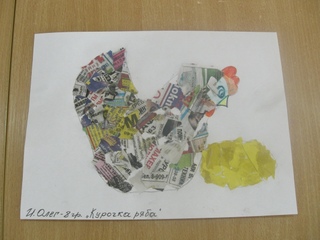 Детям нравится так же заниматься модульной аппликацией (мозаика). С помощью этой техники, путем наклеивания множества одинаковых или похожих по форме и размеру бумажных шаблонов, можно сделать например, рыбью чешую, хвост петушку или листву на дереве.