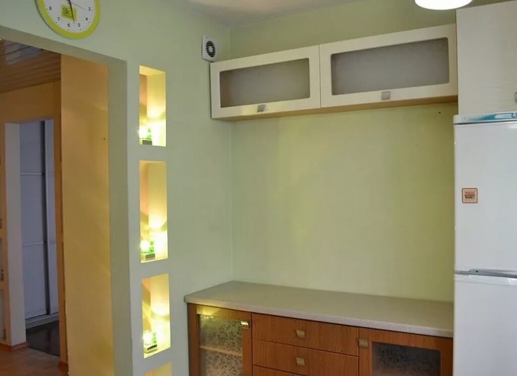 Кстати, из этого материала арка будет прекрасно выглядеть не только между гостиной и кухней, но и коридором, спальней.