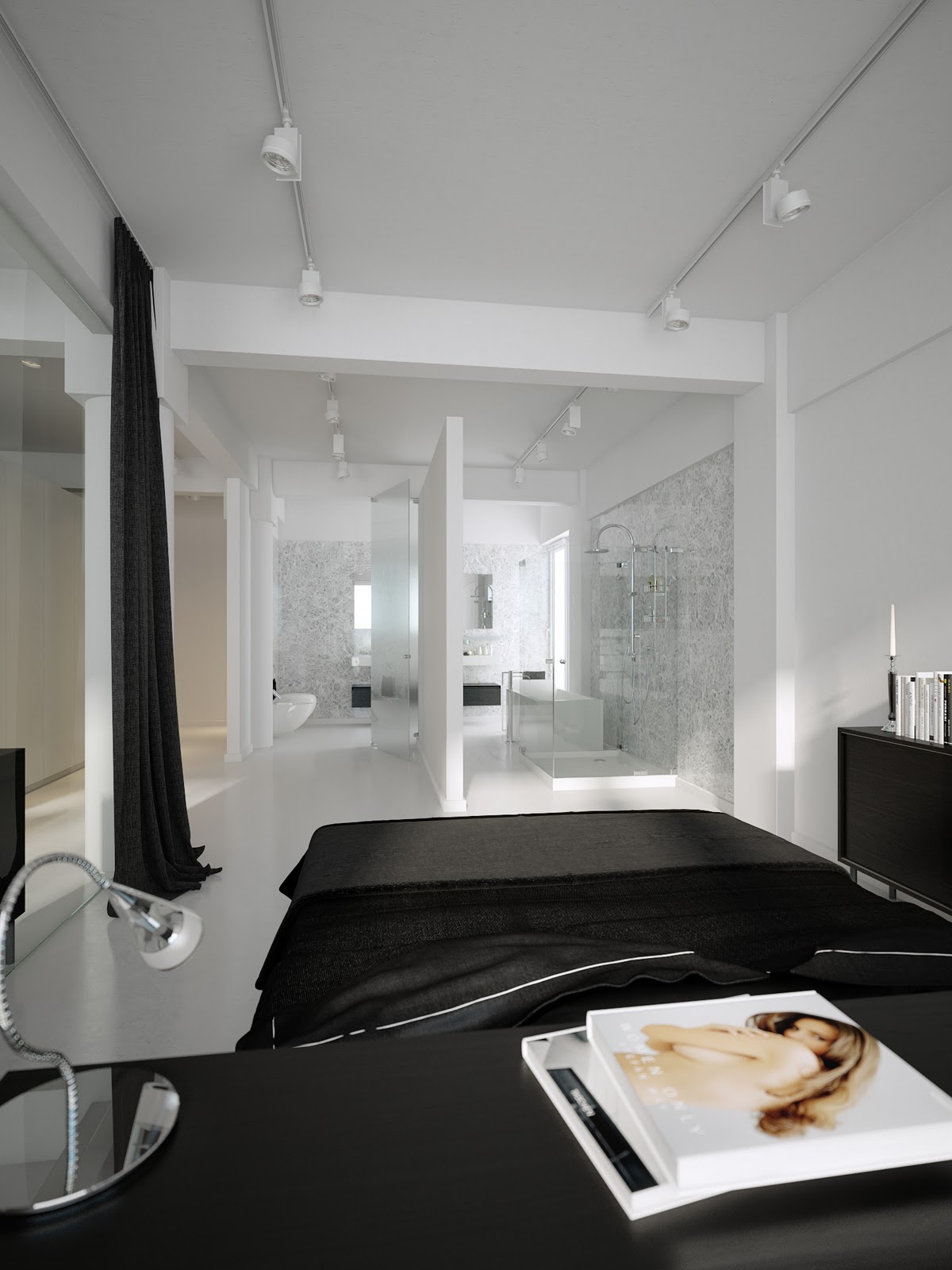 Самое главное — найти правильный баланс черного и белого элементов в комнате.Он должен быть единым во всем, поэтому, например, если стены белые, вы можете поставить черный комод, подходящую кровать и несколько небольших акцентных деталей того же цвета. {найдено на сайте ianmoorearchitects}.