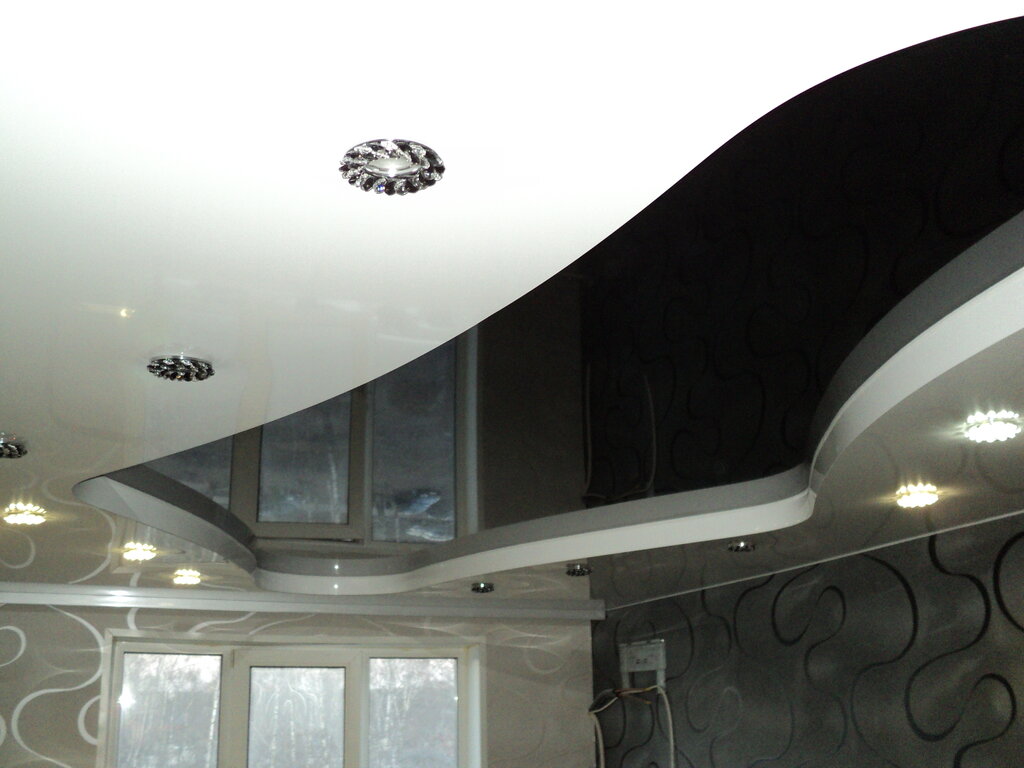 - Чёрно-белые натяжные потолки фото: дизайн и выбор стиля