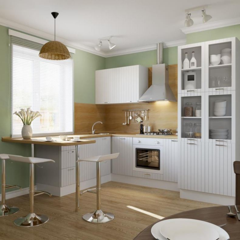 Оттенки данной палитры идеально подходят для подчеркивания элементов декора – фартука или текстильных деталей.
