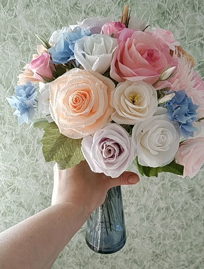 использование в изготовлении сладких букетов, цветы из креп бумаги