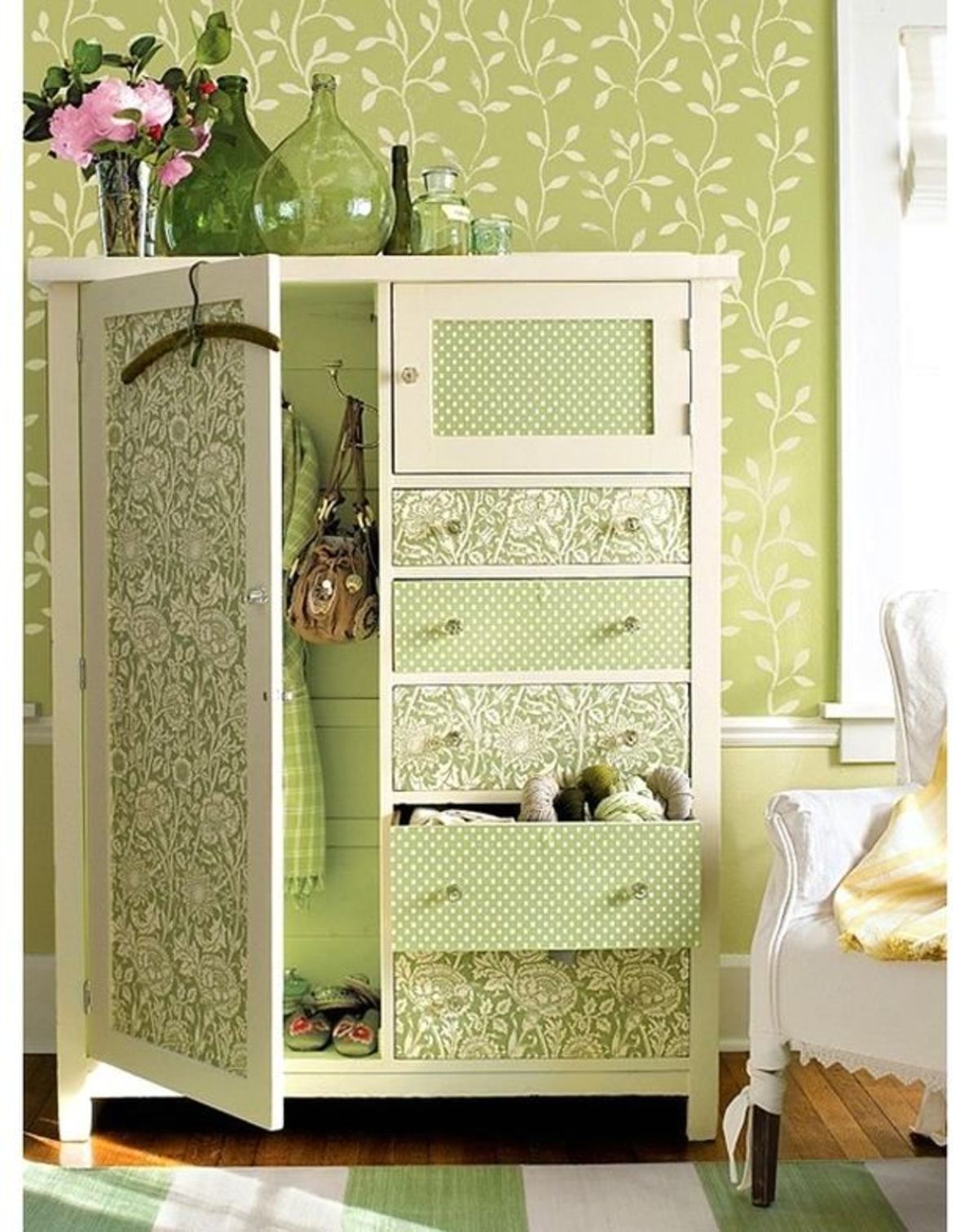 Техникой декупажа можно стилизовать поверхность шкафов под любой интерьер или стиль.