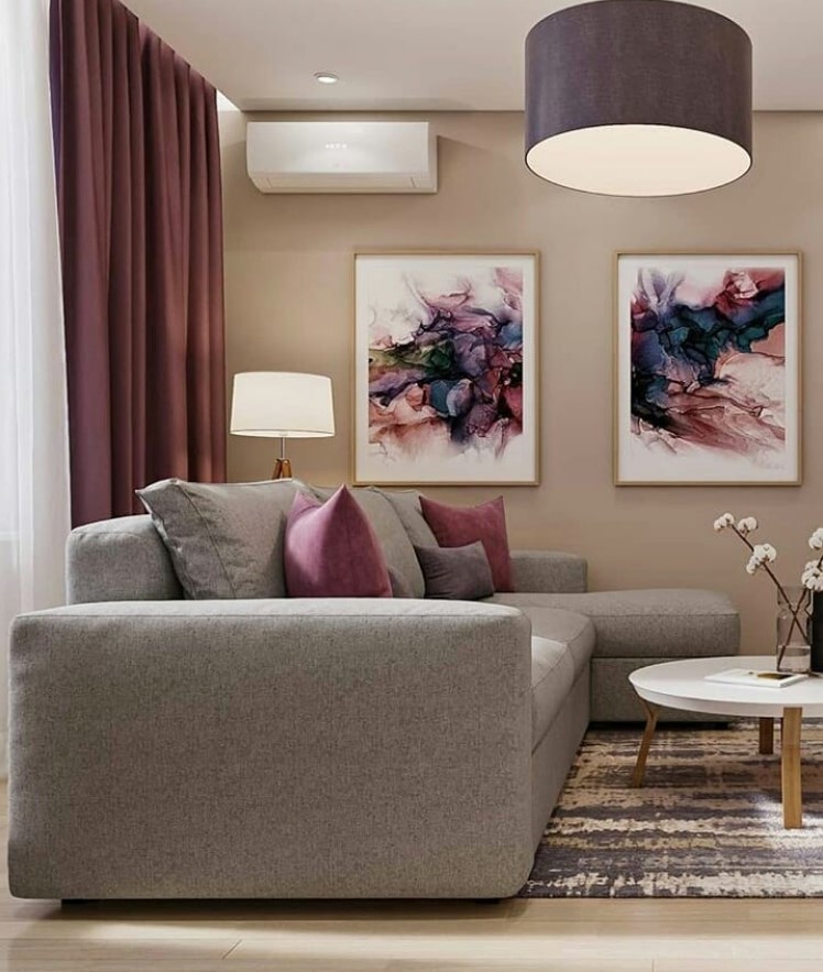 Он довольно близок к бежевой гамме, поэтому в таком цвете дизайн гостиной станет более солнечным и жизнерадостным. - К прохладным относят ультрасветлые и приглушенные серый, голубой и зеленый, сиреневый, розовый. Конечно, в каждом спектре есть и теплые тональности. Выбор зависит от общего оформления, особенностей расположения комнаты, ее площади и формы.
