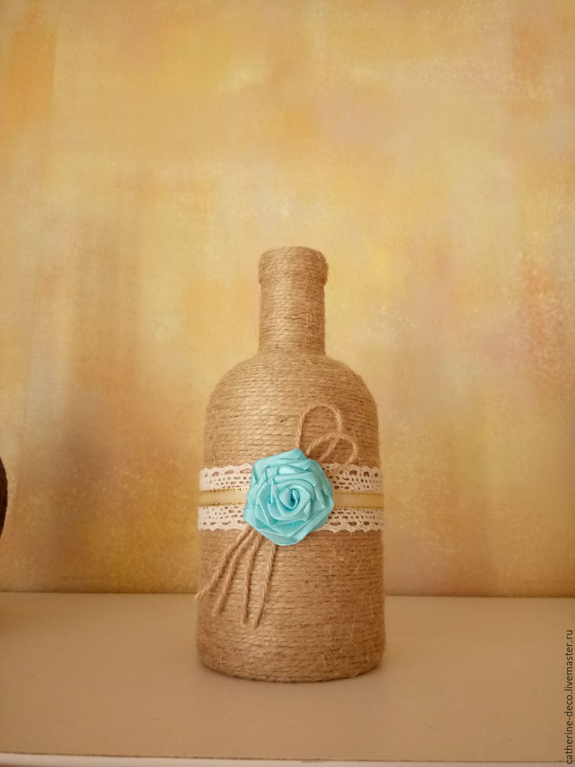 Ваза готова! Таким образом можно оформить не только высокие бутылки, но и круглые стеклянные емкости, небольшие бутылочки и сосуды.