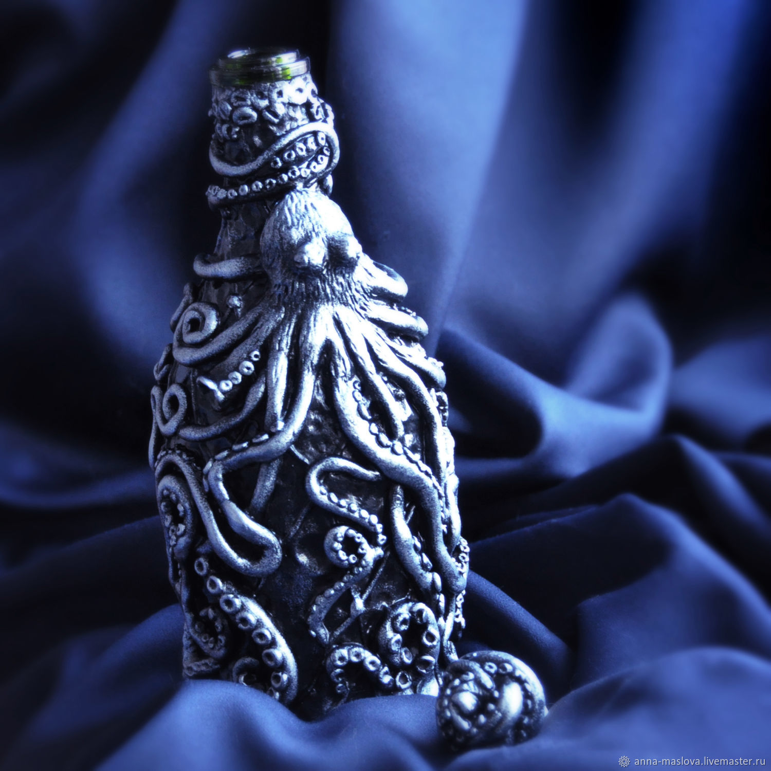 Этот мастер-класс подойдет для оформления бутылки в любой тематике: при помощи туалетной бумаги можно оформить бутылку в морской теме (складки отлично подойдут для моделирования волн), сымитировать текстиль на фляжке и т.д. В любом случае, объемные элементы будут смотреться эффектно и необычно.