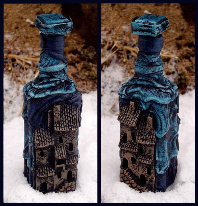 После высыхания, покрываем бутылку лаком-закрепителем.