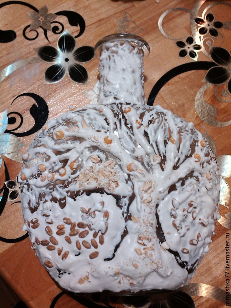 - Ставим бутылку на подставку и тщательно промазываем клеем.