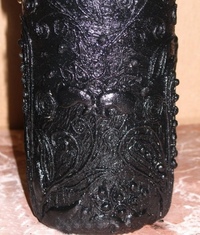 Говоря простыми словами, это эффект растрескивания. Создается с помощью специальных лаков, наносимых между окрашивающими слоями, как правило, резко контрастирующими с цветом фона. После высыхания верхнего слоя на поверхности готового изделия появляются небольшие трещинки желаемой формы.