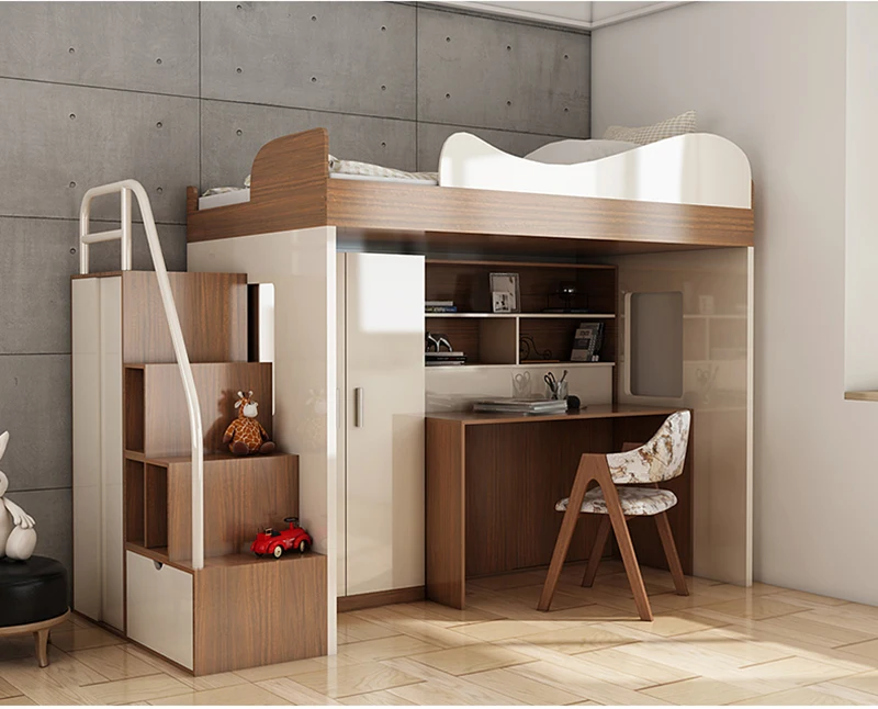 Представляет собой спальное ложе, расположенное наверху и свободную нижнюю зону, которую часто оборудуют с помощью дивана, рабочего места, комода, гардеробной, игровой или спортивной зоны.