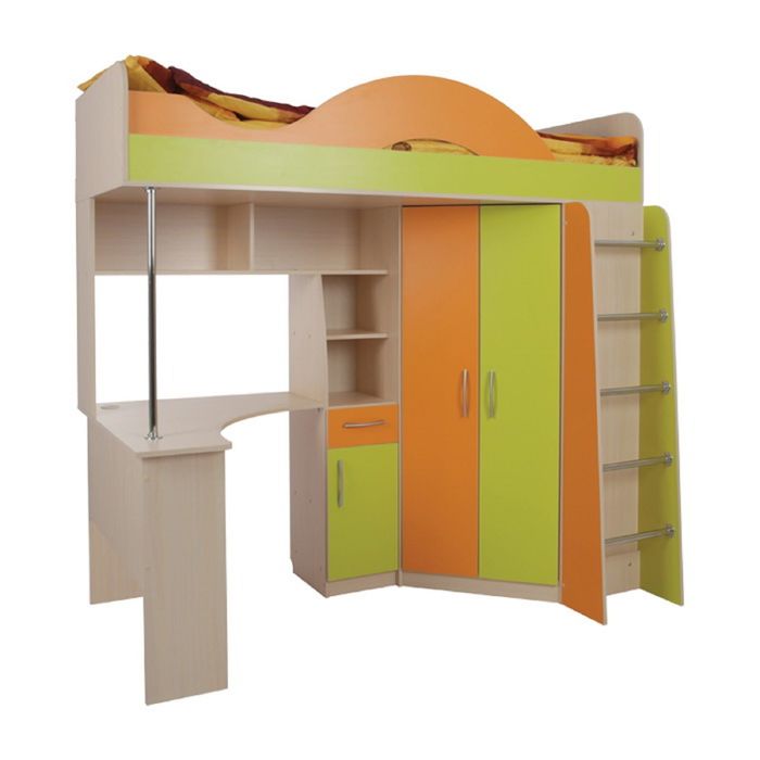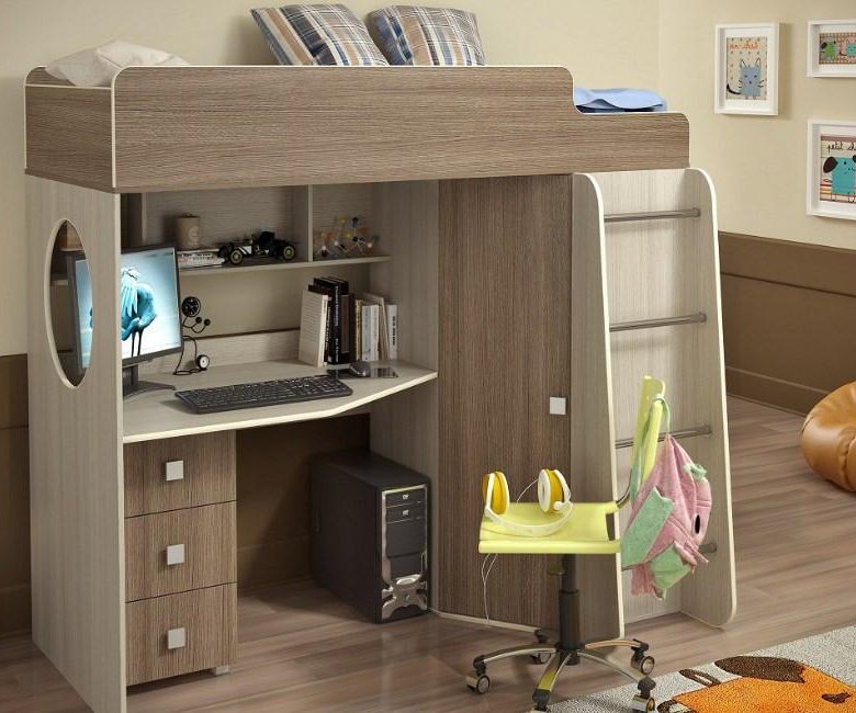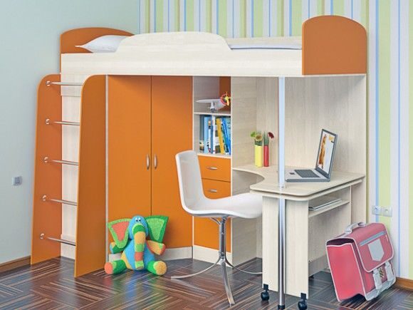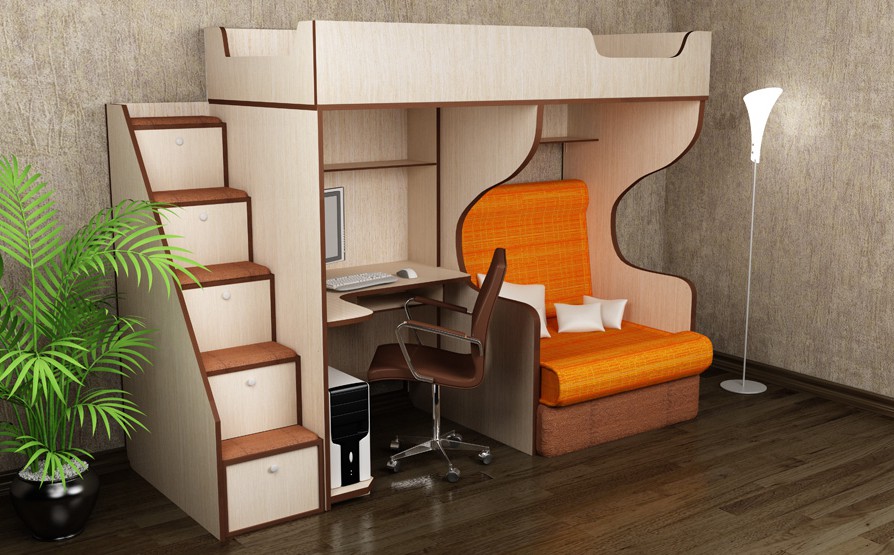 В комнате подростков, конструкции, помимо полезных функций, отличаются более продуманным и оригинальным дизайном. Изделие может иметь стандартный вид, угловое расположение, выдвижной или трансформирующийся механизм.
