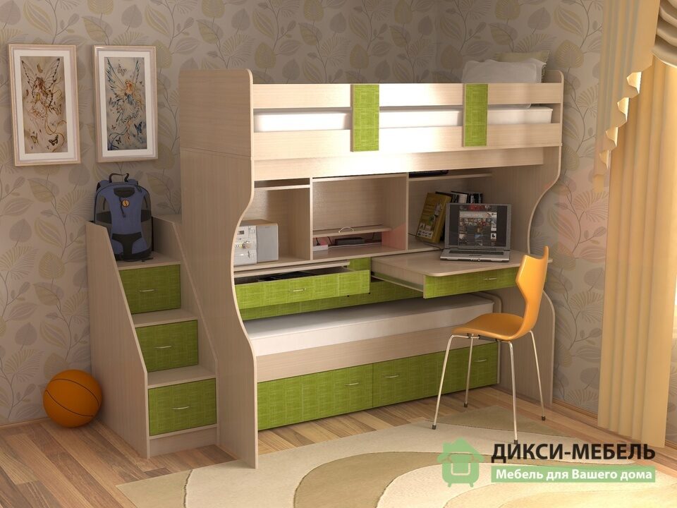 Фото комбинированных двухэтажных кроватей в детской комнате