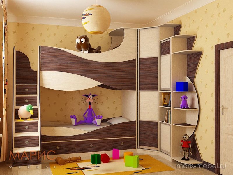 Несомненно становится главным мебельным элементом всей комнаты и предоставляет возможность интересного, веселого времяпровождения и игр для деток.