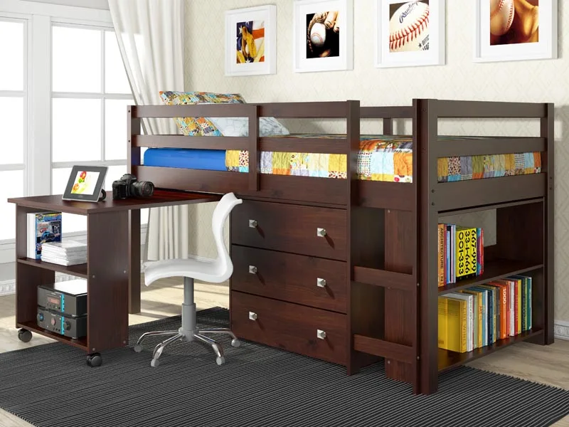 Великолепный дизайн. Дженнифер У этой кровати есть множество вариантов, как минимум 3 способа ее установки. Мы поставили стол перпендикулярно кровати, что, казалось, увеличило устойчивость. Мы любим все хранилища. Мы купили дополнительные полки.5