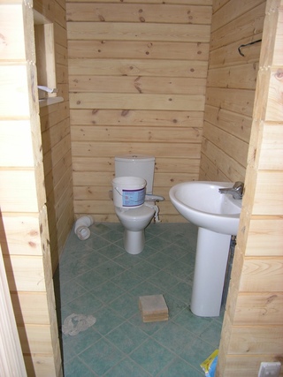 Не нужно забывать, что при устройстве такого санузла дачный домик должен отапливаться в холодное время года, потому что при минусовом значении температур можно заморозить водоснабжение. Однако, удобство пользования таким санузлом с лихвой компенсирует все предстоящие хлопоты.