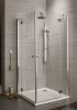 Стены, двери выполняют из ударопрочного стекла, акрила. Открываются раздвижным, распашным способом. Роликовые рельсовые конструкции компактные, обладают высокой герметичностью. Распашные двери требуют дополнительного места.