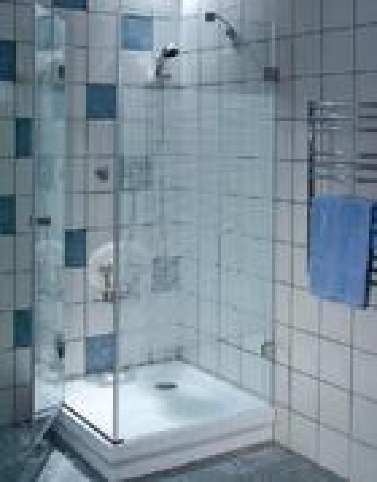 - Если у вас в доме плохая вода(хлорка и много растворённых солей), то стекло для дверей и стен лучше брать черное. Можно и прозрачное и матовое тонированное. Изнутри оно будет всё в белых отложениях, зато снаружи будет не видно. Тонированное белое выглядит убого. Черное — норм.