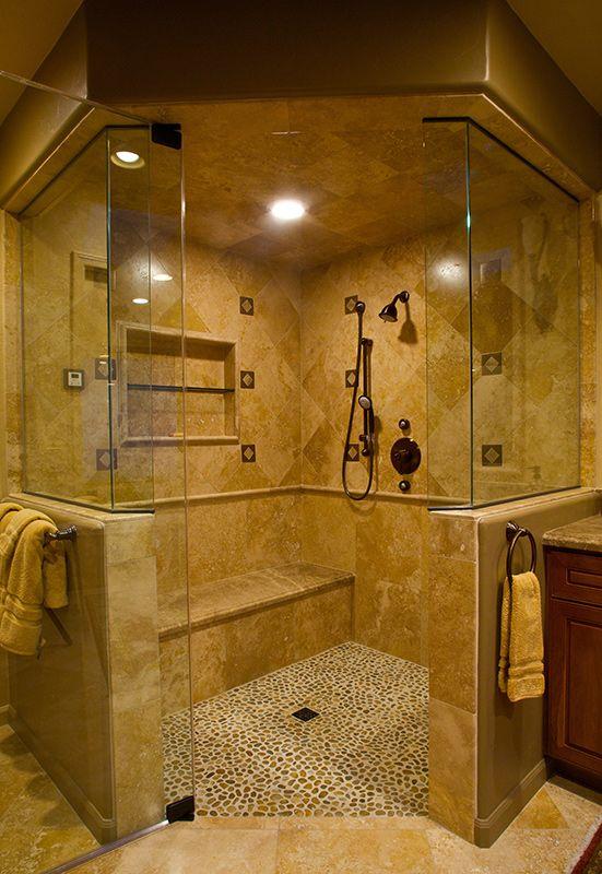 Они позволяют создавать элегантный стиль ванной комнаты с использованием свободного места для ванны или джакузи. Приобрести можно простую кабину или с гидромассажем. Замена насадок в такой душевой позволяет наслаждаться иглообразными или пульсирующими струйками воды, воздействуя на кожу термически и механически одновременно.