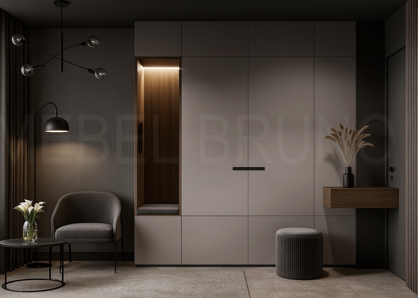 Матовая поверхность способна «впитать» свет и сделать атмосферу прихожей более мягкой и уютной. К минусам относят шершавую текстуру. Она впитывает грязь и влагу. Для ухода за этой поверхностью потребуется много времени и сил, а также специализированные моющие средства. Однозначного ответа на вопрос, какая прихожая лучше – матовая или глянцевая, нет.