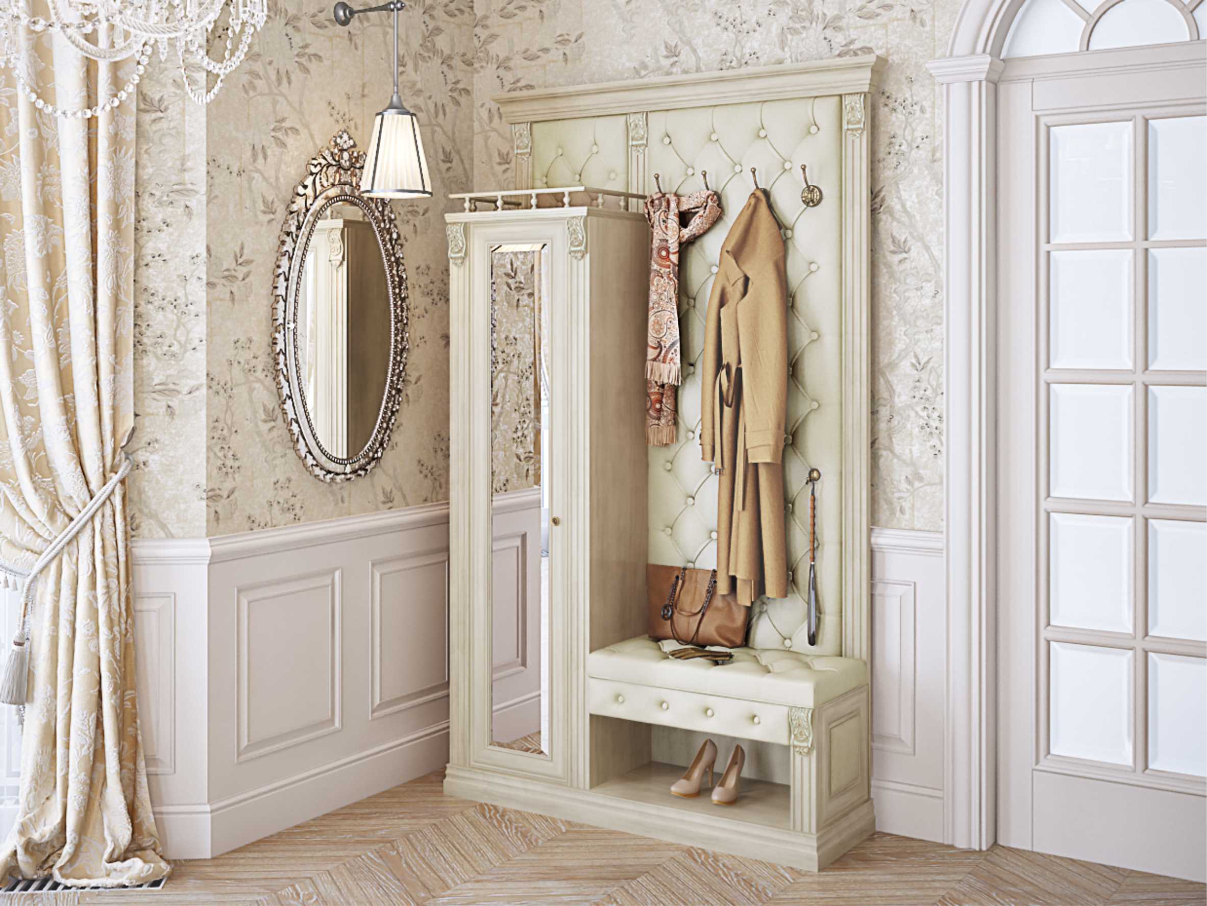 Обустраивая прихожую важно правильно выбрать патиной шкаф, конструкции для обуви и хранения мелких предметов, полки скамью и прочую атрибутику. Наличие таких предметов меблировки сделает коридор функциональным, а пребывание в нем комфортным. Мебель может быть модульной или встроенной, выполненной из массива дерева, ДСП, МДФ или других материалов.