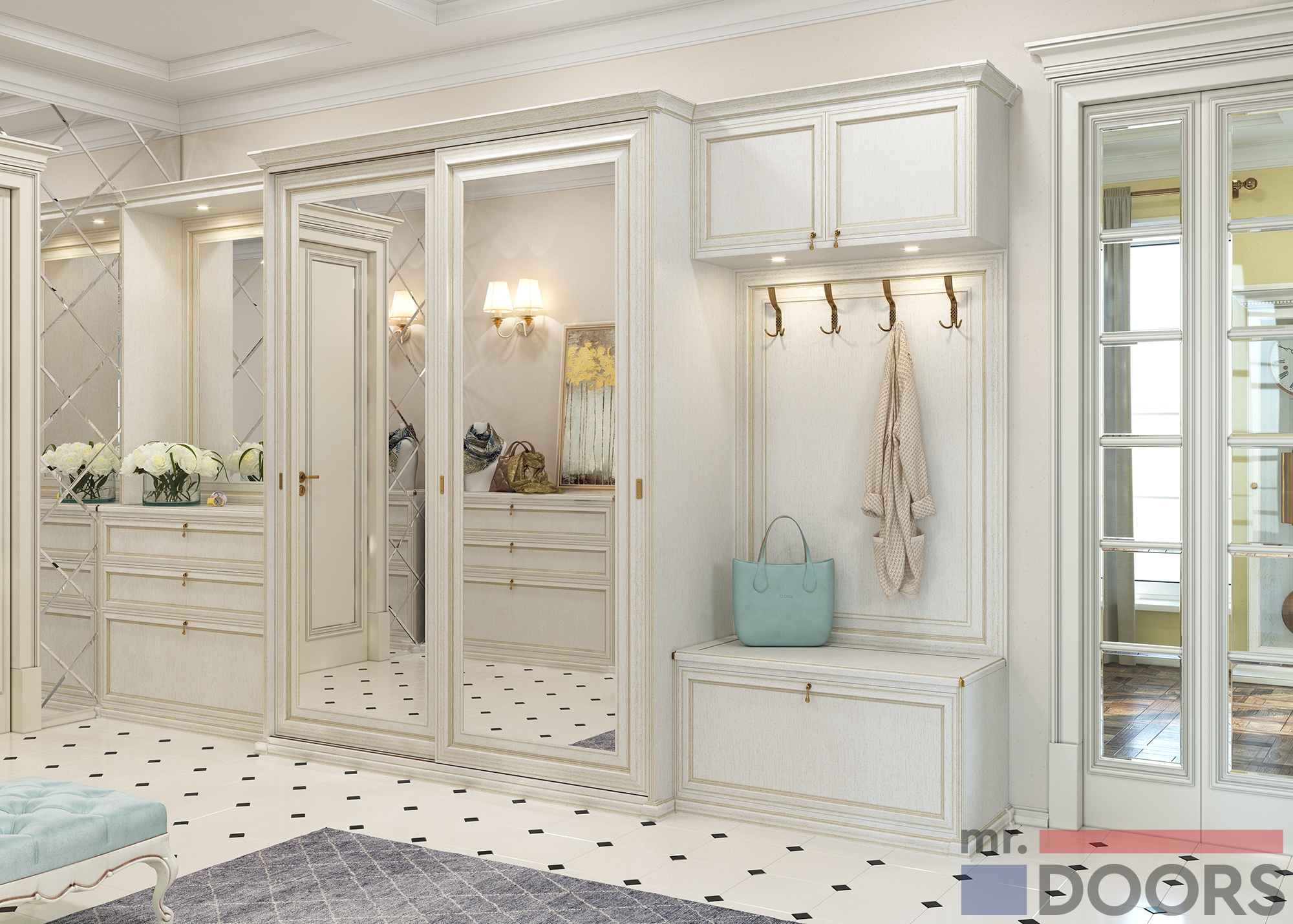 Прихожая с белыми дверями, фото интерьеров, обои в прихожей