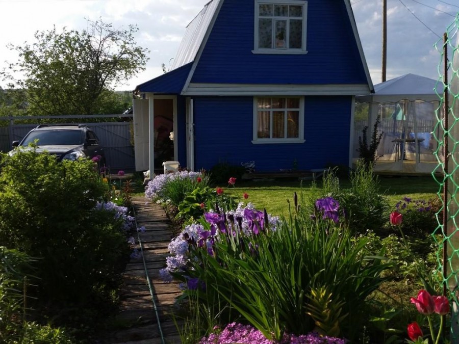 Даже если вы не сторонник ярких цветов, рекомендую вам обратить внимание на насыщенные оттенки. Даже самый заурядный домик преобразится после покраски. Это наиболее простая возможность зрительно облагородить вашу дачу.