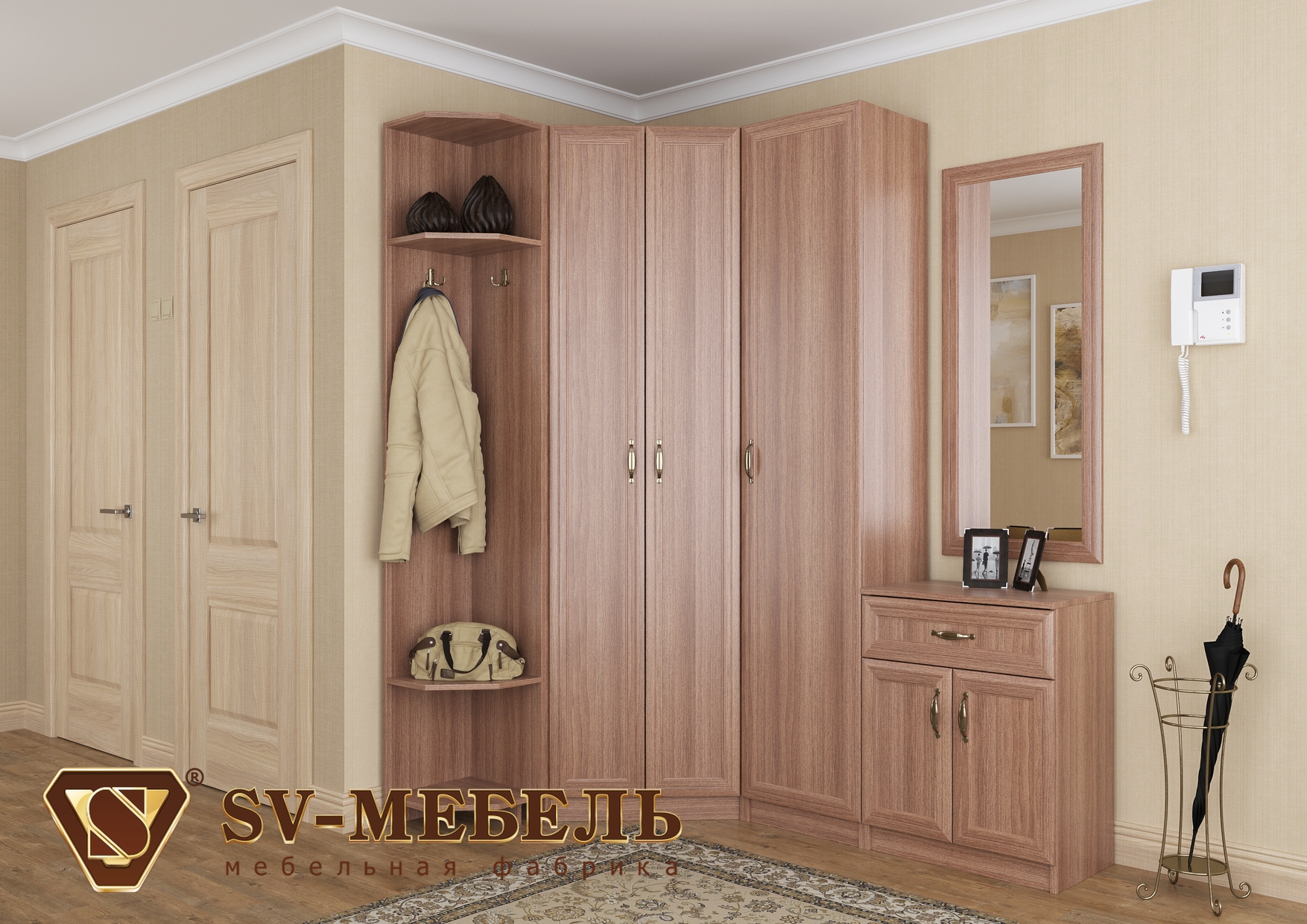 Основные компоненты угловой прихожей: