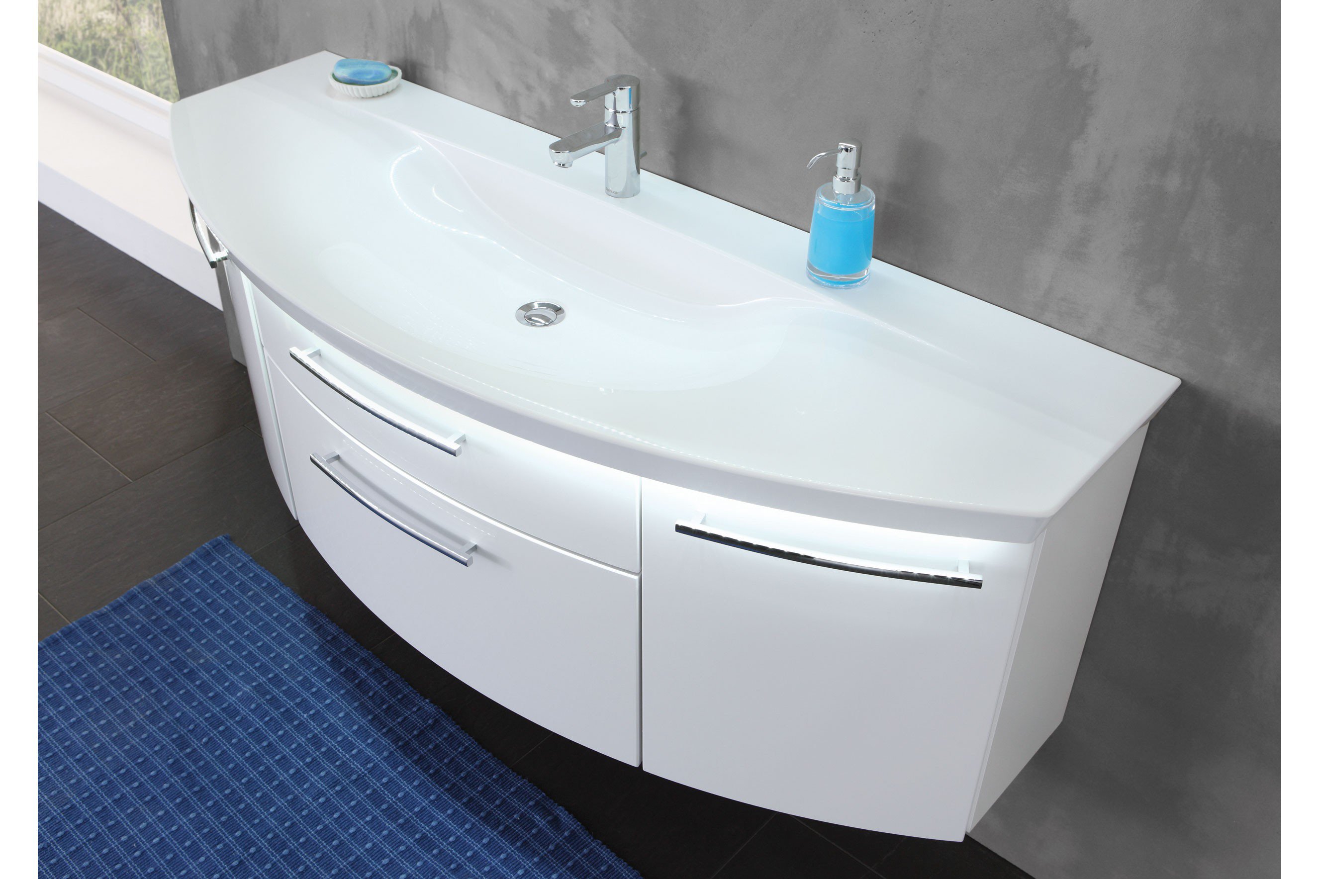 Тут все зависит от предпочтения хозяина: сама по себе тумба получается небольшой, но корзина для белья оказывается достаточно вместительной и хранить в ней можно не только грязное белье, предназначенное для стирки, но и чистые полотенца, халаты и т. п. - Существуют и полукруглые тумбы, многие дизайнеры пытаются изготовить мебель неправильной и потому более интересной геометрической формы, но такие варианты, как правило, занимают много места и довольно дороги, потому что изготавливаются по индивидуальным заказам. Столешница в них по размерам обычно получается значительно больше раковины.