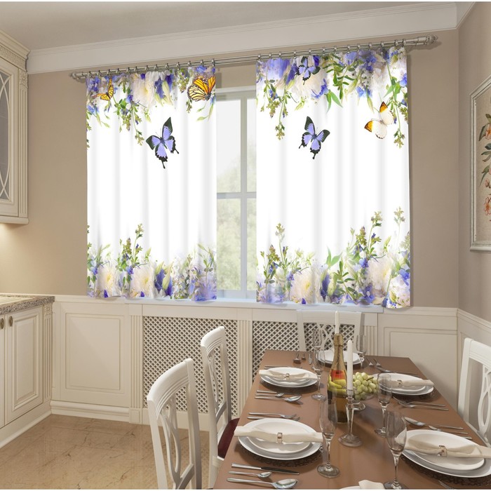 В большие кухни, если раковина и плита расположены на достаточном расстоянии, можно выбирать длинные шторы или сочетание длинных вариантов с короткими.