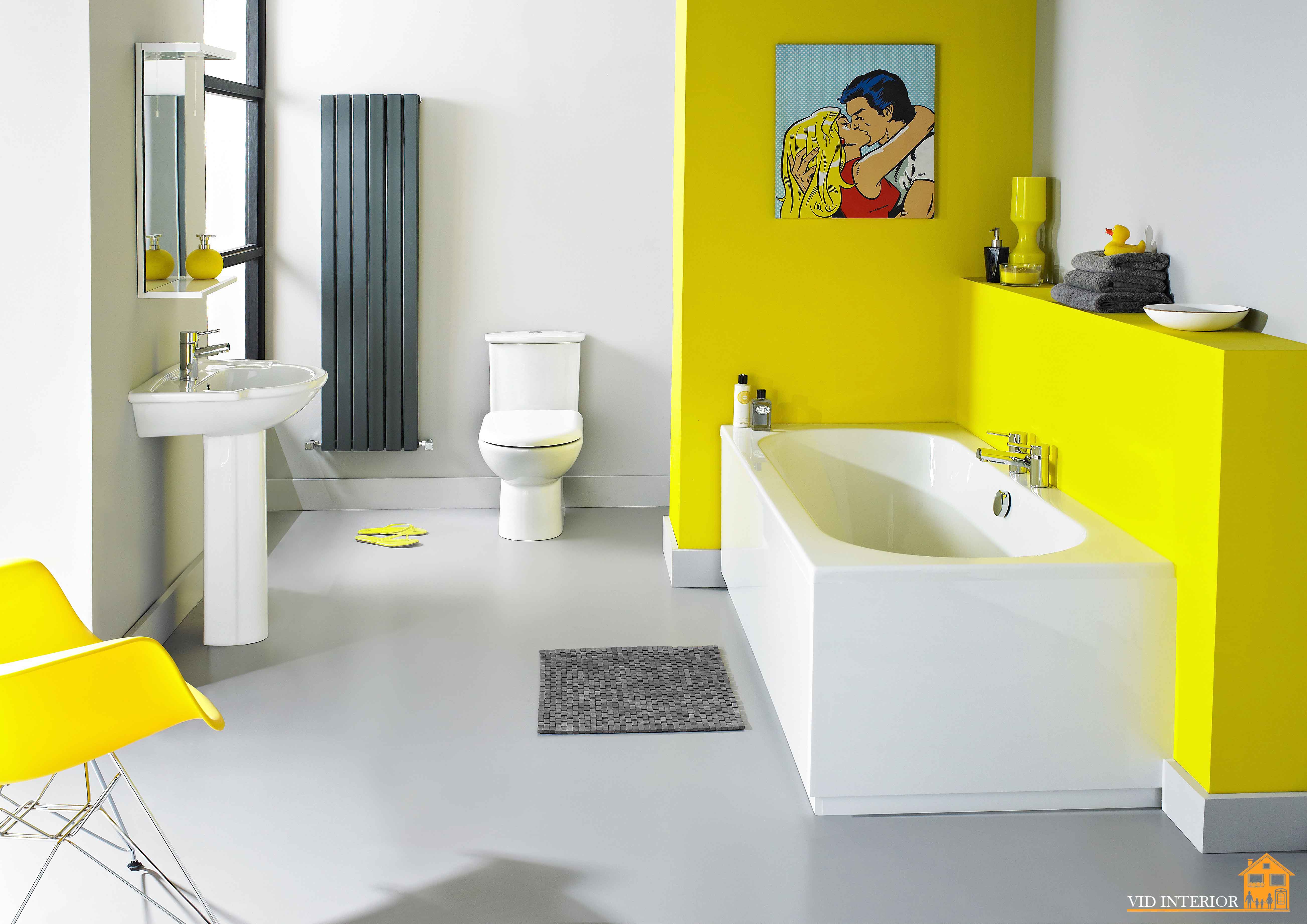Яркие ванные комнаты пользуются популярностью среди энергичных молодых людей с активной жизненной позицией.