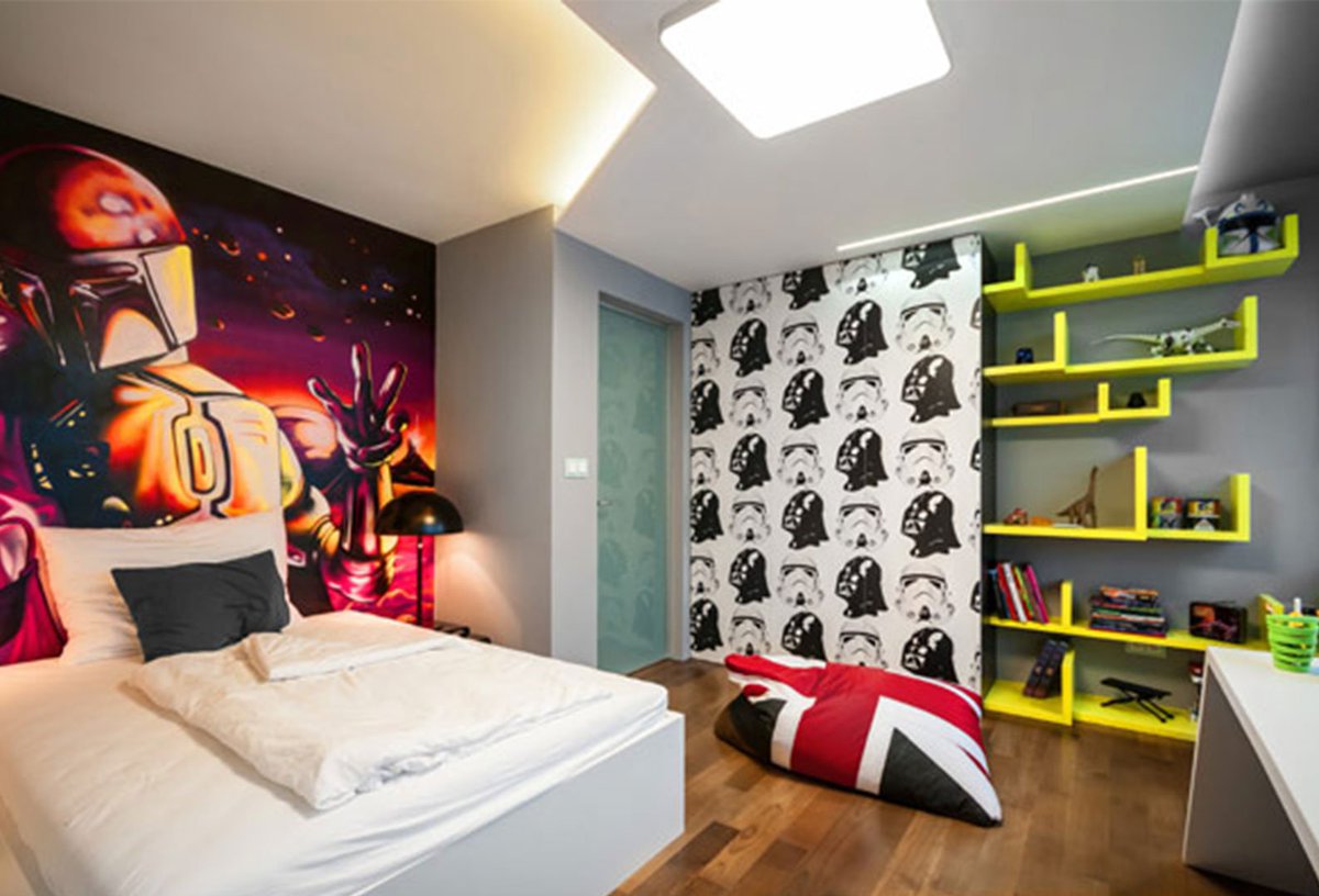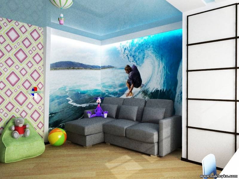 - Выбирая обои в детскую комнату для мальчиков-подростков, уделяйте особое внимание тематике рисунка. Недопустимы эротический подтекст, глуповатые персонажи и агрессивные герои фильмов, манги и комиксов – все то, что может ежедневно на подсознательном уровне менять личность ребенка не в лучшую сторону.