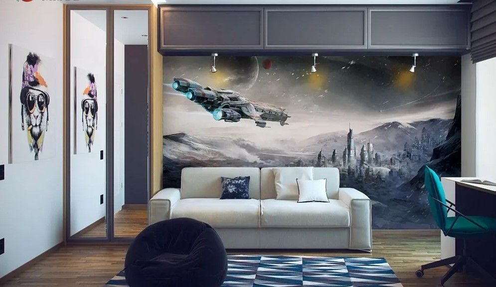 - Фотообои для комнат подростков представляют собой отдельную уникальную линейку изделий. Именно они позволяют сделать фоновое оформление комнаты стильным, броским и эффектным. Зачастую они задают нужный настрой интерьера, намекая на увлечения ребенка и делая дизайн помещения особенным.