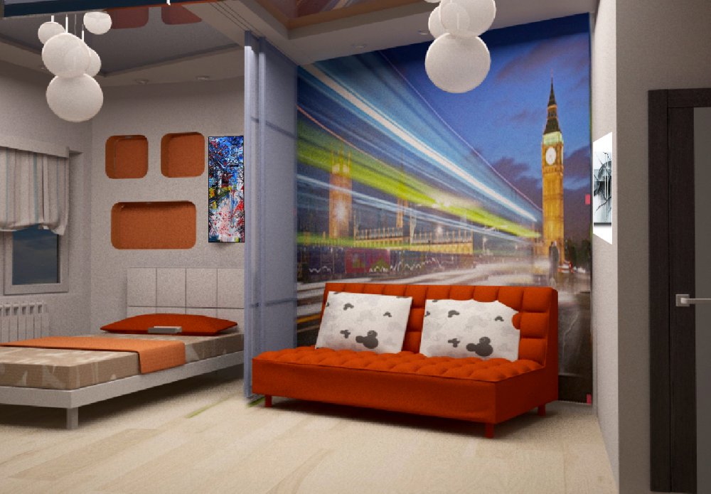 И все же, стилистика подростковых комнат юношей многогранна. Если, скажем, за основу взят минимализм, то ставка делается на простоту и строгость линий, а также функциональность. Обои в таких комнатах однотонные, они редко дополняются контрастными вставками либо панно и уж тем более не выделяются фотопечатью. Если же комнаты оформляются в стилях модерн или хай-тек, без некоторой нарядности не обойтись.
