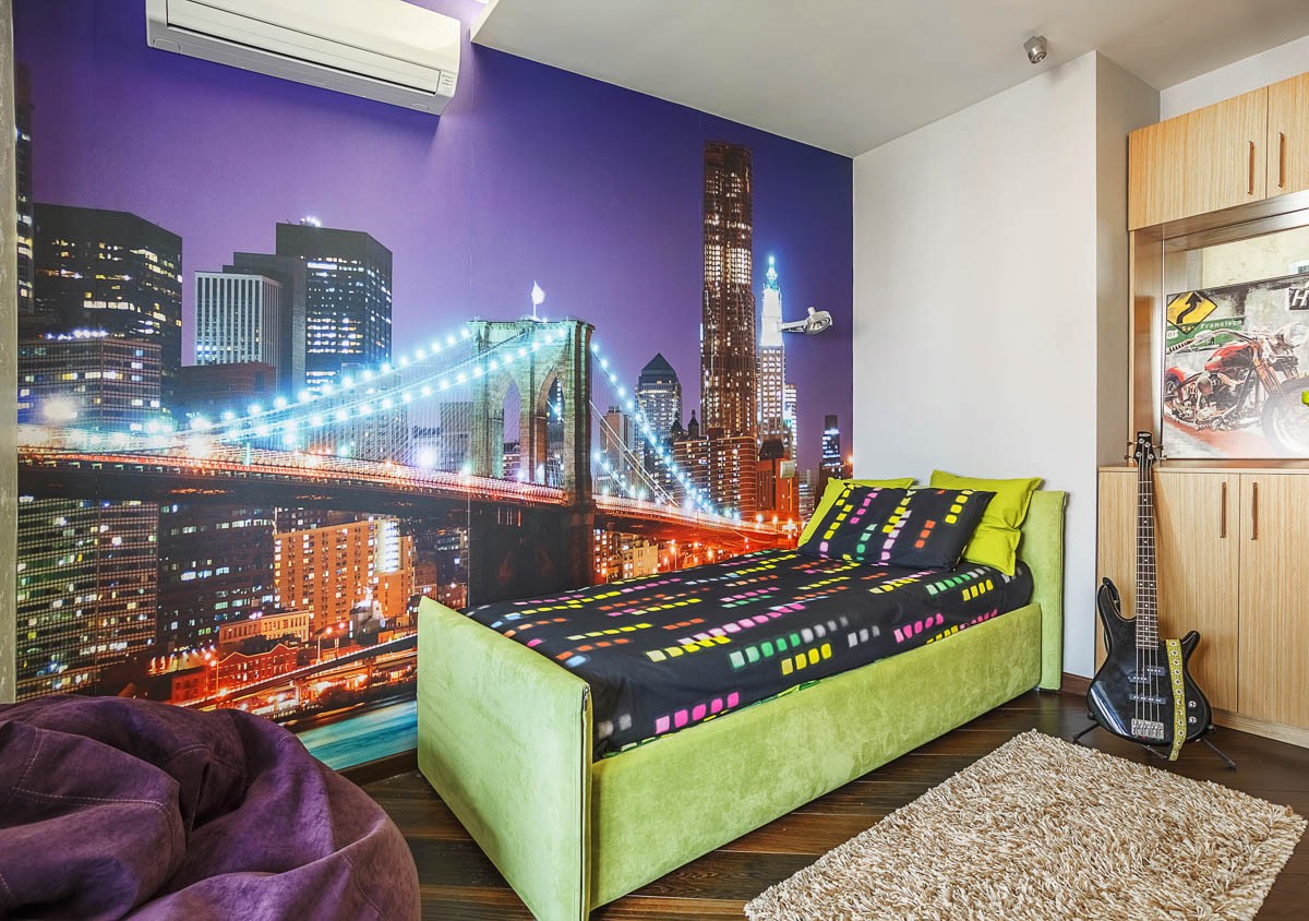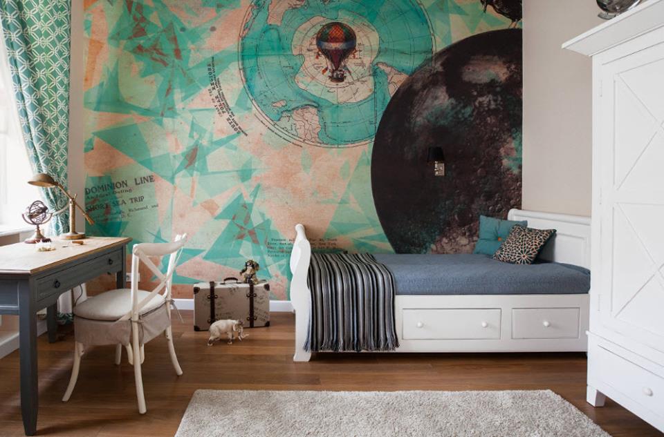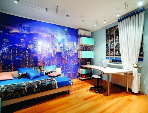 Ярким личностям придутся по душе неординарные обои-граффити. Однако чтобы такой дизайн не надоел слишком быстро, важно учитывать особенности цветовосприятия. Например, не все краски цветовой палитры сочетаются между собой, поскольку диаметрально противоположны по восприятию. Тем, кому нравятся объемные картины, стоит обратить внимание на полотна с изображением ночного либо дневного города. Смотрятся такие фотообои не просто стильно: они зрительно наполняют комнату воздухом и простором. Не менее хороши для стен подростковой комнаты и варианты с изображением карты мира.