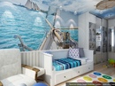 В некоторых случаях, желая оригинально украсить детскую, родители выбирают мебель, стилизованную под речной транспорт — лодку, гондолу, байдарку.Но что, если через время ребенку наскучат морские акценты? Свяжитесь с нами — мы предложим вам нестандартное решение. Стилизованные фотообои с кораблем сыграют роль особой художественной детали в новом интерьере. А когда придет время перемен, стеновую панель можно будет легко заменить. Таким образом вы освежите комнату, избегая ненужных отходов.