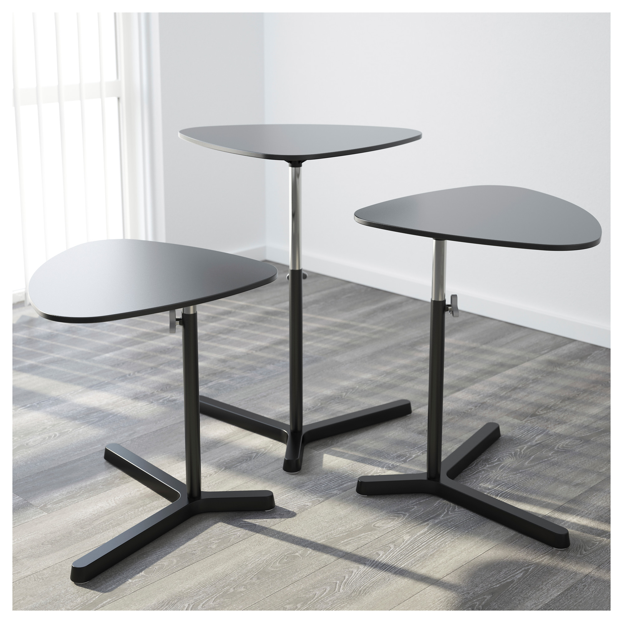 Среди них, к примеру, малогабаритный стол «Тингби». Он отлично подойдет для работы с ноутбуком, если вы любите располагаться на диване или в кресле, поскольку его высота составляет всего 45 см. Вы можете выбрать этот стол в белом или темно-сером цвете.