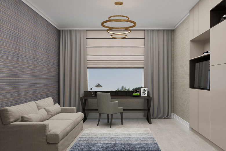 Дизайн гостевой комнаты напоминает гостиничный номер, в котором будет комфортно находиться посетителям.