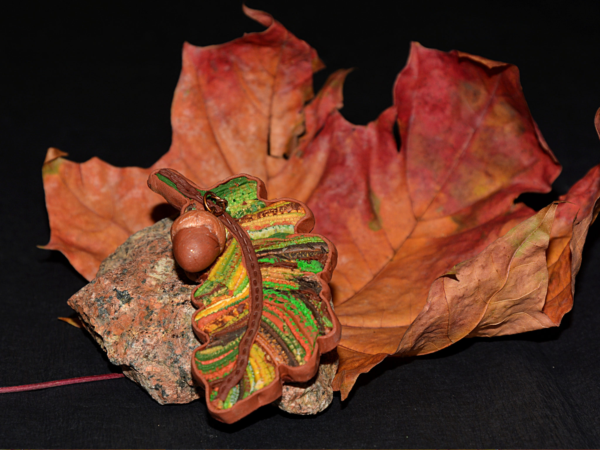 Уникальную форму осенних листьев можно использовать и для создания оригинальных подвесок. Например, вырезать листочки из соленого теста. Для этого окрашиваем соленое тесто в осенние цвета.