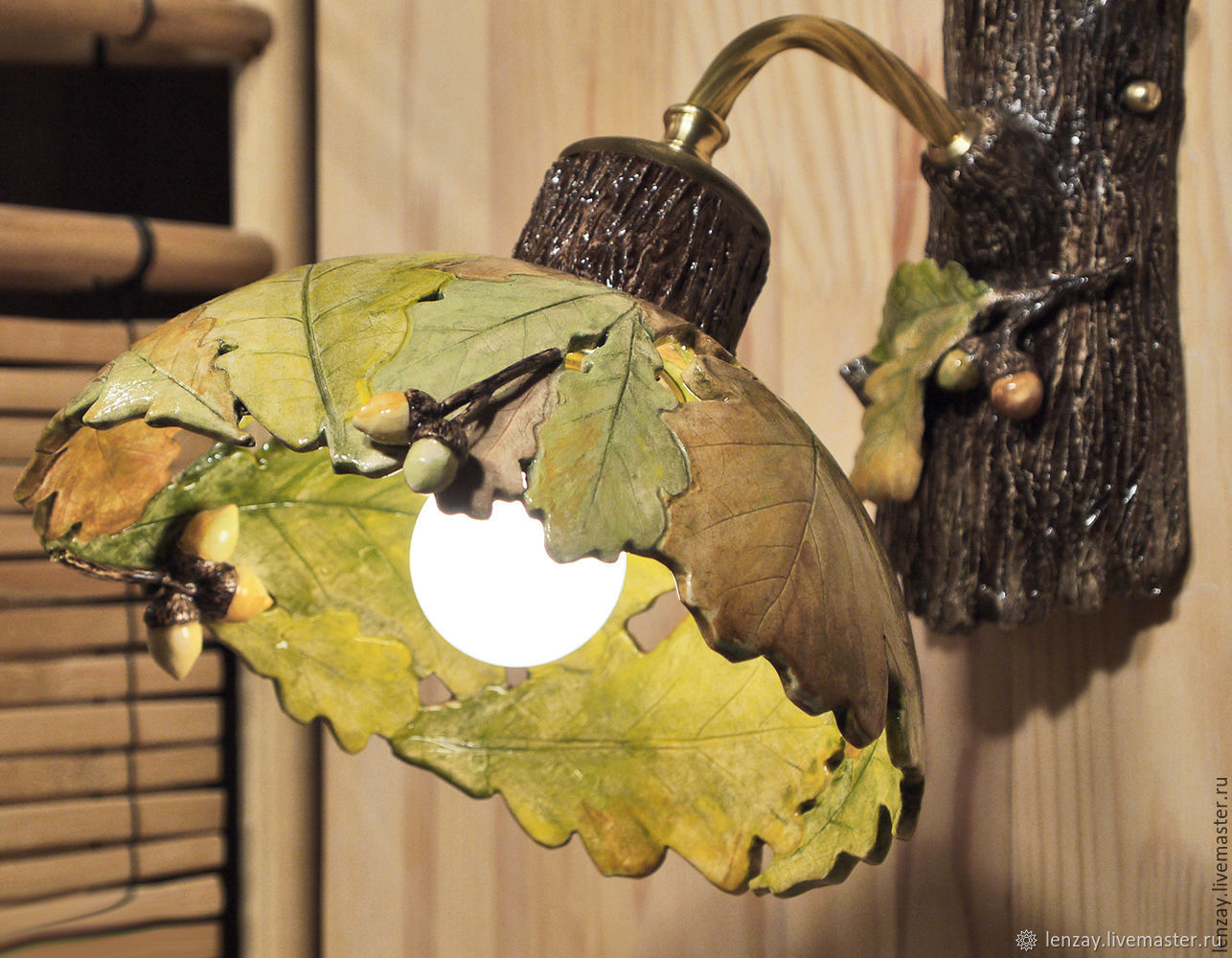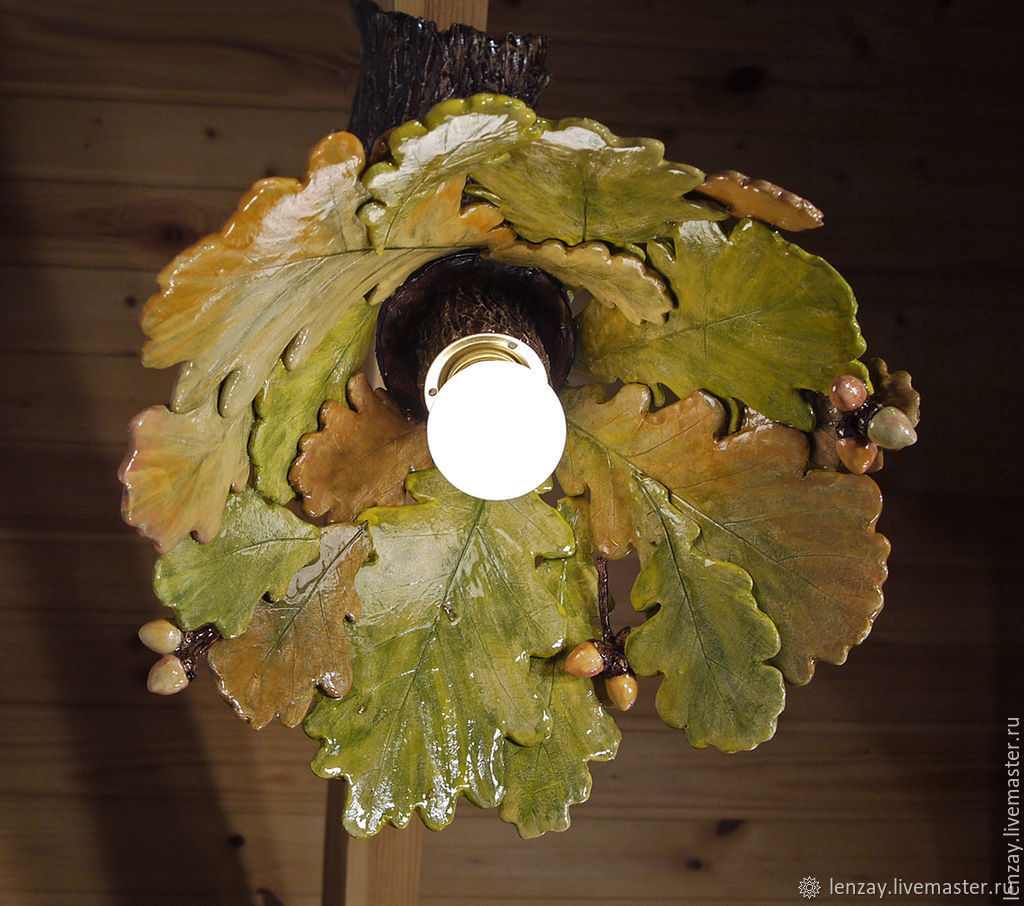 Я придумал дерево, покрытое сохранившимися зелеными дубовыми листьями и увенчанное желудем. Это действительно идеальный способ взять с собой кусочек осени в помещение. Красота формы и цвета, свежий запах, ощущение свежести листа. Все напоминания об осеннем сезоне.