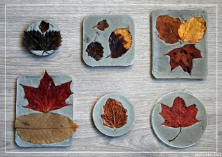 Раскрашиваем яркими красками сначала сам отпечаток. Затем тонким слоем лака или краски покрываем оставшуюся часть поделки.