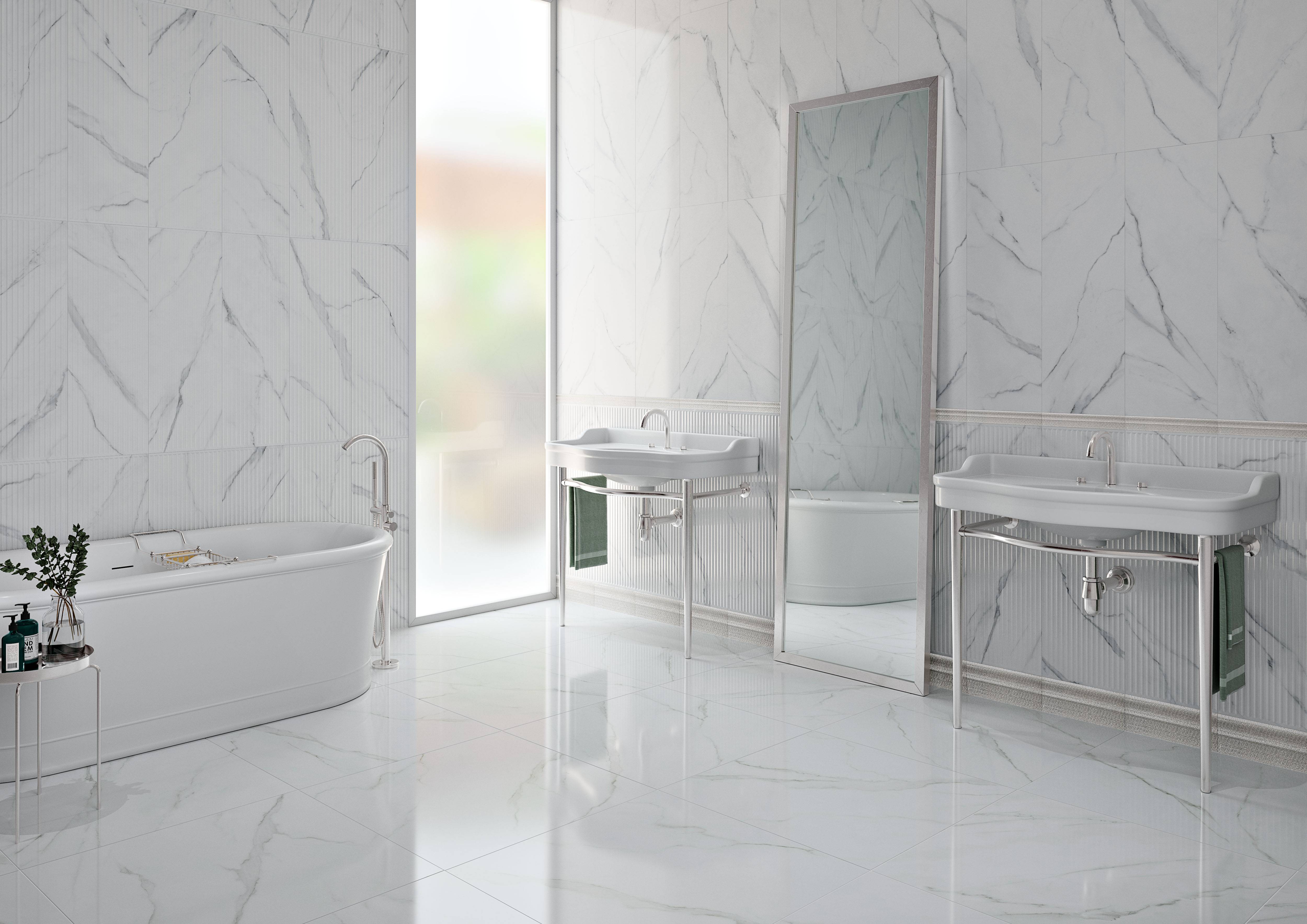 Keros Quebec Premium: оставаясь в тренде благодаря потрясающему внешнему виду мрамора , Keros Quebec Premium — это ректифицированная напольная плитка из керамогранита с блеском. Простая элегантность в крупноформатной напольной плитке.