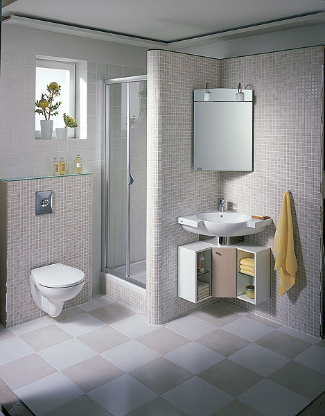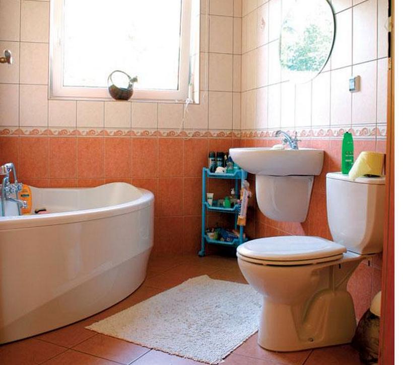 Больше всего места в ванной комнате занимает непосредственно ванна. Современные варианты дизайна не ограничивают при выборе ее форм и размеров. Стандартная длина ванны – 1,7 м, такие габариты легко вписываются в стандартный раздельный санузел при расположении вдоль стены. Но можно пофантазировать и приобрести ванну меньшего размера или угловую, тем самым выиграв немного свободного места.