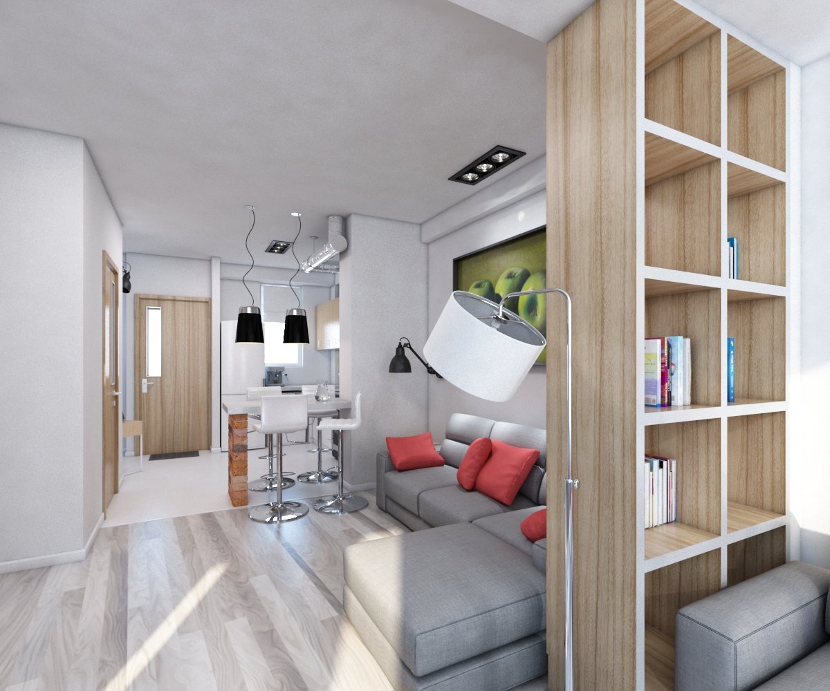 От всего лишнего придется отказаться. Декоративные детали и полки с неиспользуемыми вещами в интерьере маленькой квартиры лишние.