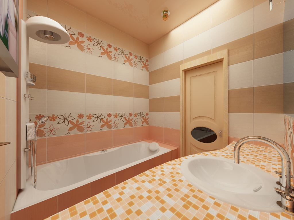 Такая отделка ванных комнат из моды уже вышла, чаще всего современные ванные комнаты оформляют в одной цветовой гамме, используя спокойные пастельные тона, возможно использовать какие-то гармоничные цветовые вставки.