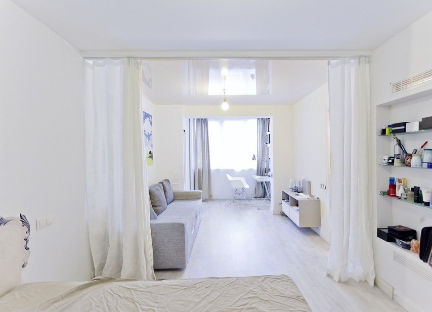 Выбирая шторы, убедитесь, что они идентичны цвету стен. Подобное цветовое решение поможет сделать пространство объемнее. Кроме того, шторы не должны быть слишком плотными и тяжелыми. Лучше всего комбинировать рулонные шторы и легкий хлопковый тюль или гардины.