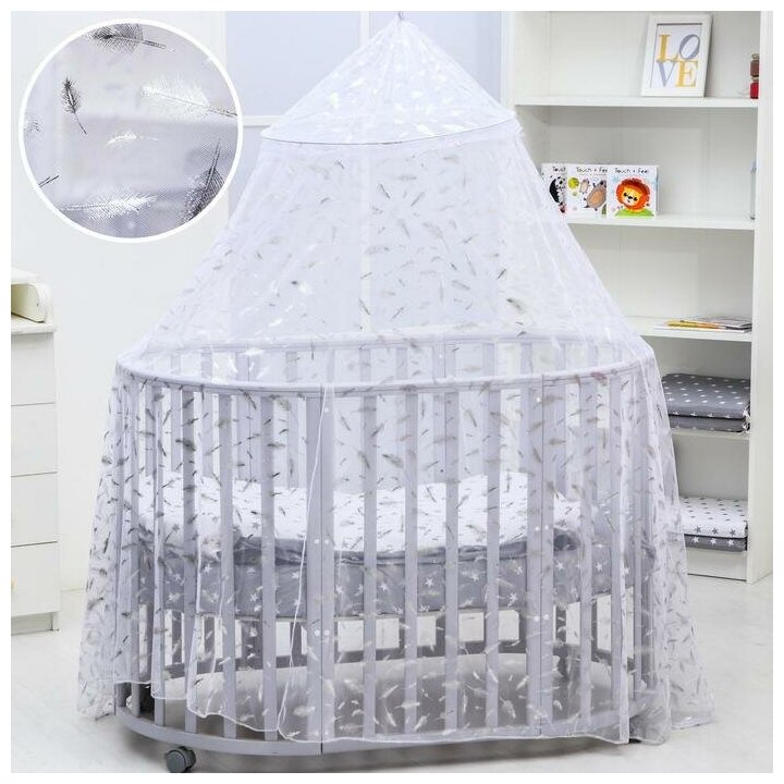 Обратите внимание также на длину свободного края. Он должен доходить до ножек детской кроватки. Это нужно для того, чтобы изделие могло хорошо выполнять свою роль, то есть не пропускать мошек и пыль внутрь кроватки.