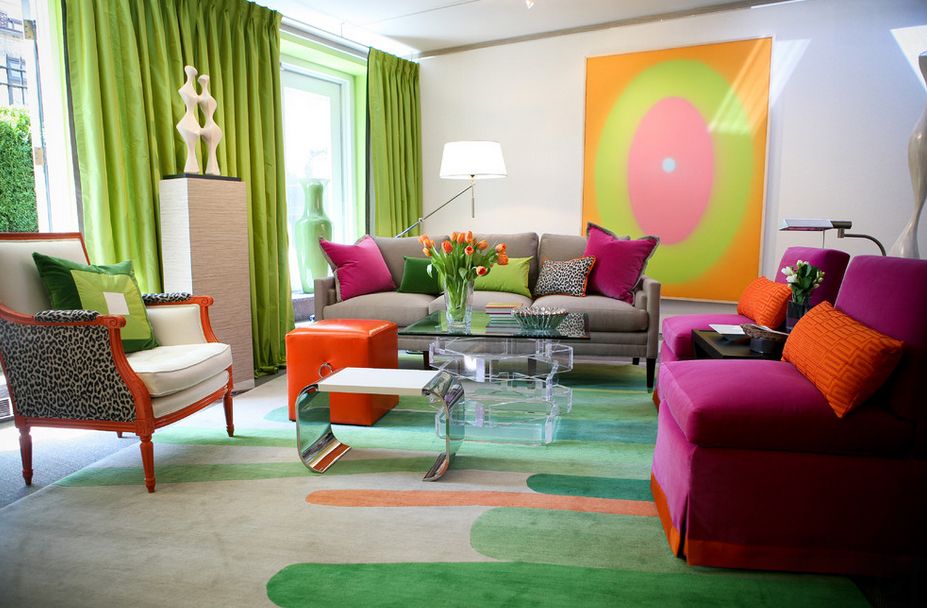 - Для более насыщенных интерьеров уместна игра контрастов: красного с зеленым, черного с белым, желтого с фиолетовым. Только нельзя распределять их поровну: один из цветов должен преобладать.