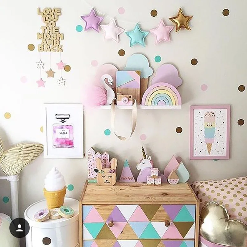 Картины, которые вы выберете для ее стены, произведут большое впечатление — такие вещи, как макраме в пастельных тонах или забавные формы, такие как радуга и сердца, создадут некоторый визуальный интерес, который она оценит, — но где лучше всего найти памятные произведения искусства? В личной коллекции! Если вы повесите свою собственную детскую работу в белую или светлую деревянную рамку, это будет выглядеть очень шикарно и подарит ей чувство гордости.